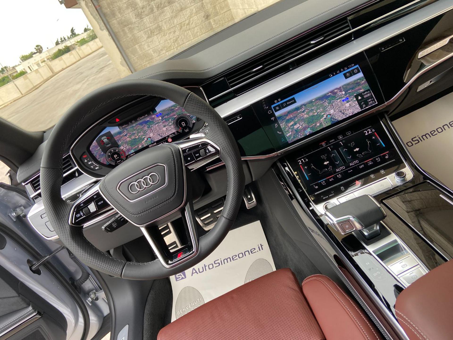 AUDI A8 50 TDI 3.0 quattro tiptronic S line ANNO 04/2024 KM 49454 CERTIFICATI AUDI VETTURA IN ECCELLENTI CONDIZIONI FULL OPTIONAL CON PACCHETTO ESTETICO NERO PLUS-AUDI VIRTUAL COCKPIT PLUS-TETTO APRIBILE-NAVIGATORE SATELLITARE MMI PLUS-AUDI SMARTPHONE INTERFACE-CARPLAY/ANDROID AUTO-LETTORE DVD-CERCHI IN LEGA DA 21''-SENSORI DI PARCHEGGIO ANTERIORI E POSTERIORI-TELECAMERA POSTERIORE-FARI MATRIX LED CON FRECCE DINAMICHE, ASSISTENZA ABBAGLIANTI ED IMPIANTO LAVAFARI-FANALI POSTERIORI A LED CON FRECCE DINAMICHE-SENSORE LUCI-SENSORE PIOGGIA-INTERNI SPORTIVI IN PELLE CON TRAPUNTATURA A ROMBI-SEDILI ELETTRICI CON MEMORIE RISCALDABILI, VENTILATI E MASSAGGIANTI-LUCI AMBIENTE PLUS MULTICOLORE-VOLANTE IN PELLE MULTIFUNZIONE REGOLABILE ELETTRICAMENTE-CAMBIO AL VOLANTE-CRUISE CONTROLL ADATTIVO CON CONTROLLO ELETTRONICO DELLA CARREGGIATA-AUDI DRIVE SELECT-SOSPENSIONI PNEUMATICHE ED ASSE POSTERIORE STERZANTE-KEYLESS PER L'APERTURA, CHIUSURA E L'ACCENSIONE DELL'AUTO SENZA L'UTILIZZO DELLE CHIAVI-APERTURA E CHIUSURA ELETTRICA DEL BAGAGLIAIO-TENDINE PARASOLE POSTERIORI ELETTRICHE-VETRI POSTERIORI OSCURATI ECC. POSSIBILITA' DI FINANZIAMENTO/LEASING A TASSO AGEVOLATO. PER INFO CELL 335/8229775