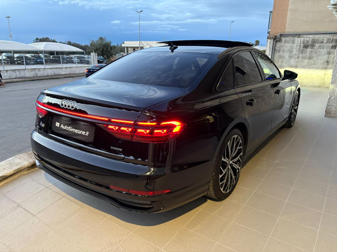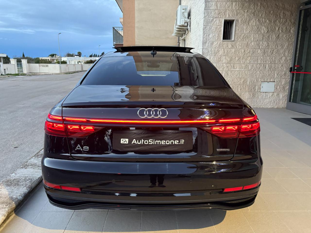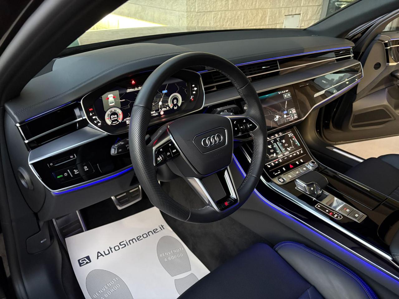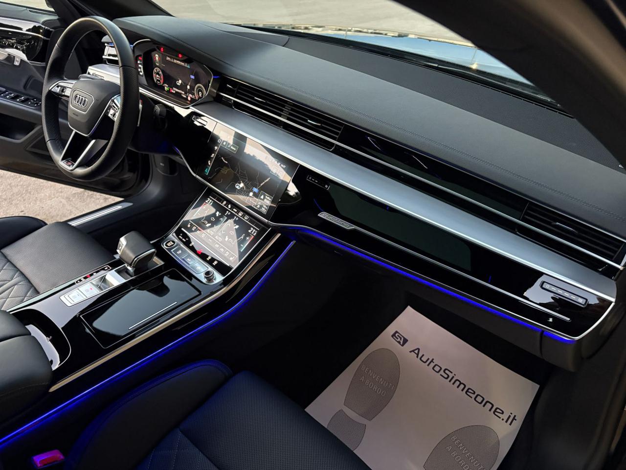 AUDI A8 50 TDI 3.0 quattro tiptronic S line ANNO 03/2023 KM 23971 CERTIFICATI AUDI VETTURA IN ECCELLENTI CONDIZIONI FULL OPTIONAL CON PACCHETTO ESTETICO NERO PLUS-AUDI VIRTUAL COCKPIT PLUS-TETTO APRIBILE-NAVIGATORE SATELLITARE MMI PLUS-AUDI SMARTPHONE INTERFACE-CARPLAY/ANDROID AUTO-LETTORE DVD-CERCHI IN LEGA DA 21''-SENSORI DI PARCHEGGIO ANTERIORI E POSTERIORI-TELECAMERA POSTERIORE-FARI MATRIX LED CON FRECCE DINAMICHE, ASSISTENZA ABBAGLIANTI ED IMPIANTO LAVAFARI-FANALI POSTERIORI A LED CON FRECCE DINAMICHE-SENSORE LUCI-SENSORE PIOGGIA-INTERNI SPORTIVI IN PELLE CON TRAPUNTATURA A ROMBI-SEDILI ELETTRICI CON MEMORIE RISCALDABILI, VENTILATI E MASSAGGIANTI-LUCI AMBIENTE PLUS MULTICOLORE-VOLANTE IN PELLE MULTIFUNZIONE REGOLABILE ELETTRICAMENTE-CAMBIO AL VOLANTE-CRUISE CONTROLL ADATTIVO CON CONTROLLO ELETTRONICO DELLA CARREGGIATA-AUDI DRIVE SELECT-SOSPENSIONI PNEUMATICHE ED ASSE POSTERIORE STERZANTE-KEYLESS PER L'APERTURA, CHIUSURA E L'ACCENSIONE DELL'AUTO SENZA L'UTILIZZO DELLE CHIAVI-APERTURA E CHIUSURA ELETTRICA DEL BAGAGLIAIO-TENDINE PARASOLE POSTERIORI ELETTRICHE-VETRI POSTERIORI OSCURATI ECC. POSSIBILITA' DI FINANZIAMENTO/LEASING A TASSO AGEVOLATO. PER INFO CELL 335/8229775